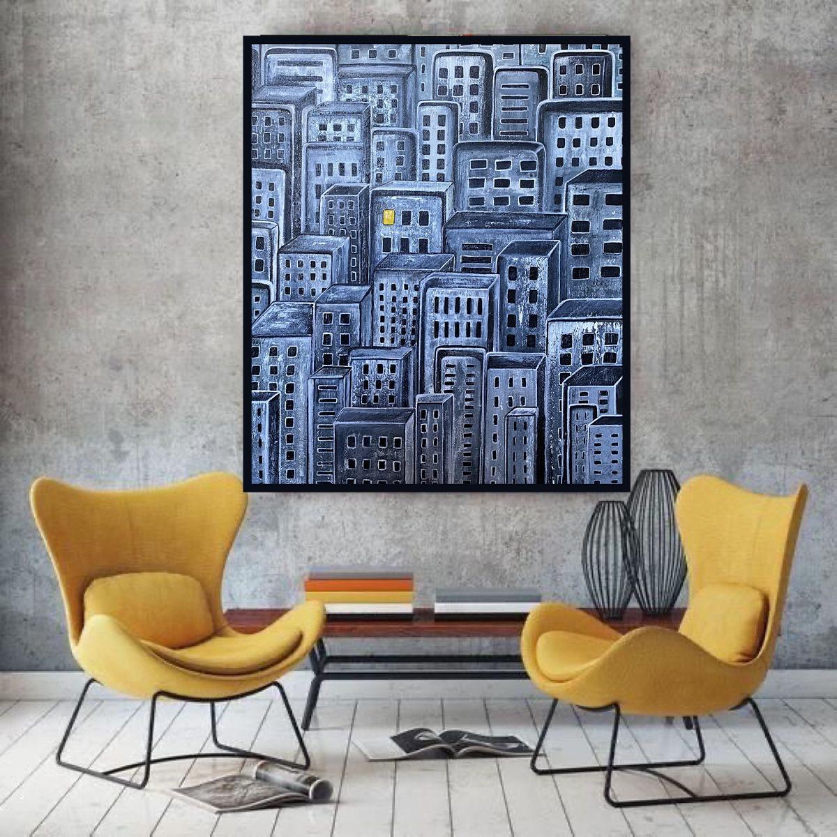“Maybe You are the Light” is a compelling acrylic painting by Neda Zeyghami. The artwork features an abstract cityscape rendered in a monochromatic palette of blacks, grays, and whites. The blocky, geometric shapes of the buildings create a dense, urban environment that feels both familiar and surreal. Among the uniformity, a single yellow window stands out, symbolizing individuality and hope within the anonymity of city life. This painting invites viewers to reflect on their own place within the urban tapestry, urging them to find the light within themselves amidst the monotony.